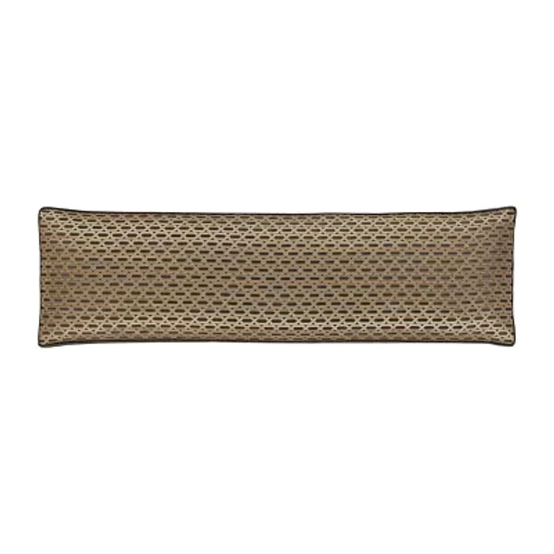 The melbourne bronze bolster pillow adds modern hand-crafted "Luxury hotel" detail to the melbourne bedding set. The reading bolster adds dimension to the collection as the oversized accent pillow spans the width of the bed and is perfect for propping up when reading. It is fully reversible, featuring a woven geometric pattern and satin piping for a tailored touch. Pair this pillow with the melbourne bedding set by queen street for a refined contemporary look.