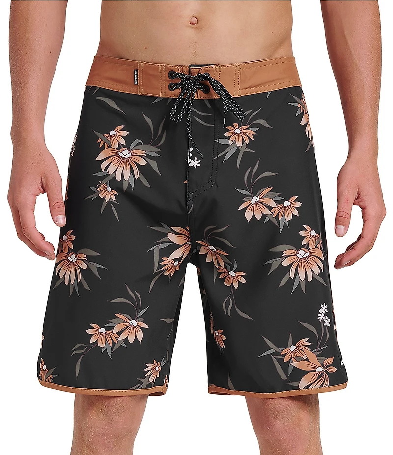 From Quiksilver, these boardshorts feature: Allover floral print Lightweight water-friendly fabric Front tie at the waist Back pocket detail Approx. 19" inseam Polyester/elastane Machine wash/tumble dry Imported.
