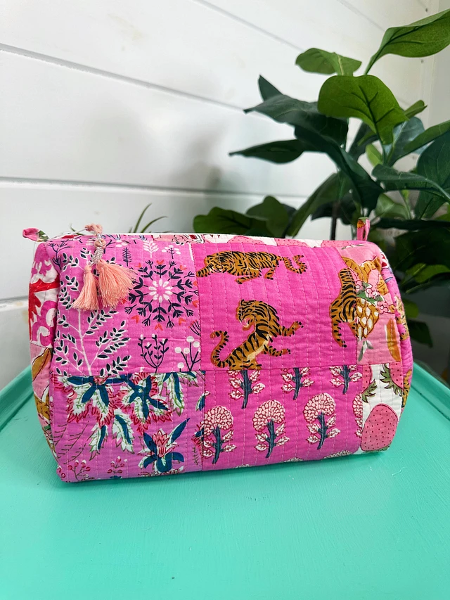 Quilted Makeup Travel Cosmetics Toiletry Bag Pink Patchwork