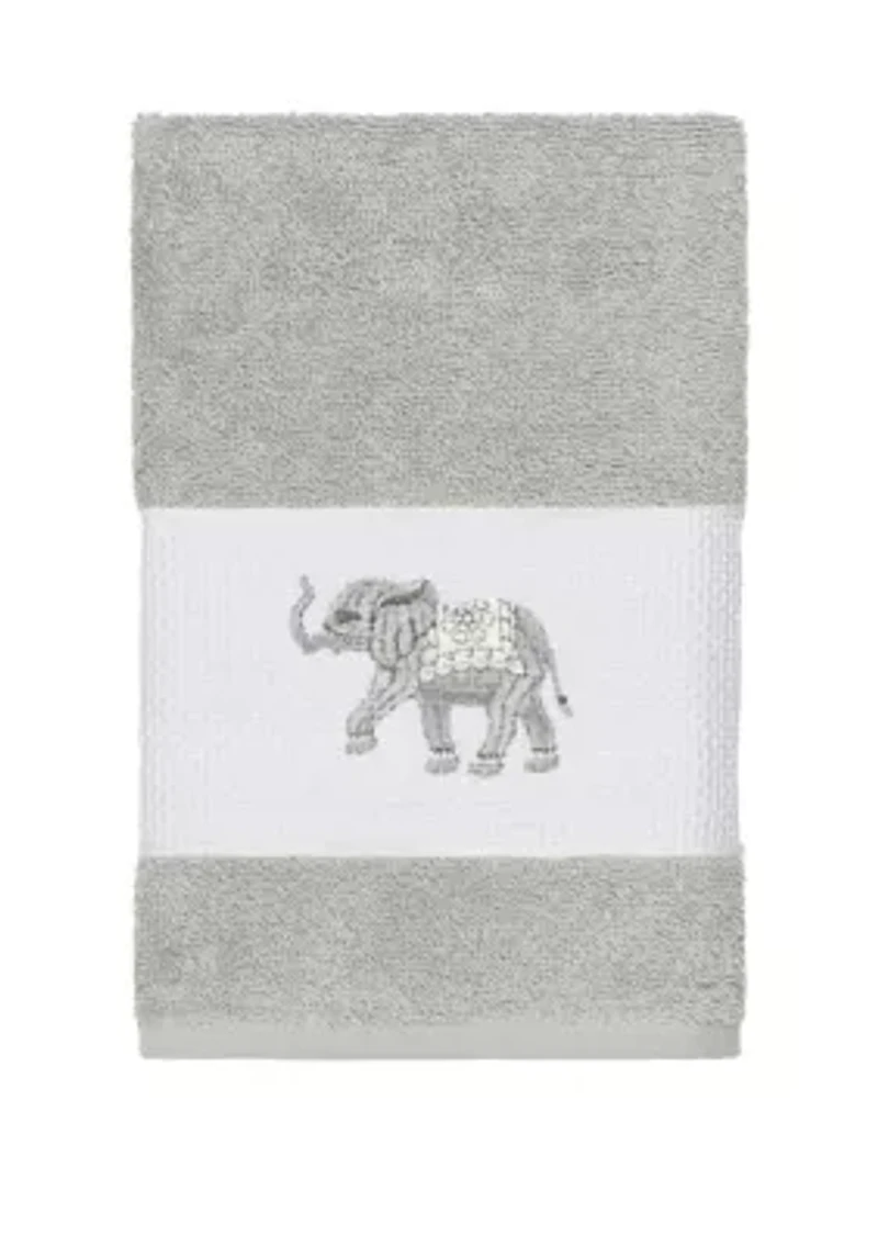 The Quinn Embellished Hand Towel by Linum Home Textiles features exotic and intricately-detailed elephant embroidery on a woven textured border. This soft and luxurious towel is made of genuine premium Turkish cotton and offers lasting absorbency and superior durability. Available in a range of lovely towel colors Embellished in USA Warranty available Made in Turkey Imported Product Specifications 16 in x 30 in Material & Care Superbly absorbent, quick-drying fabric Cotton Machine washable