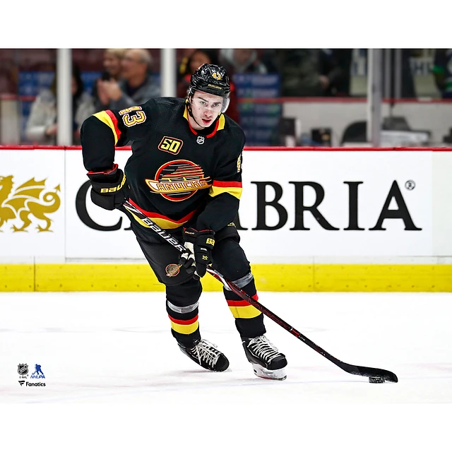 Quinn Hughes Vancouver Canucks Unsigned Black Alternate Jersey Photograph