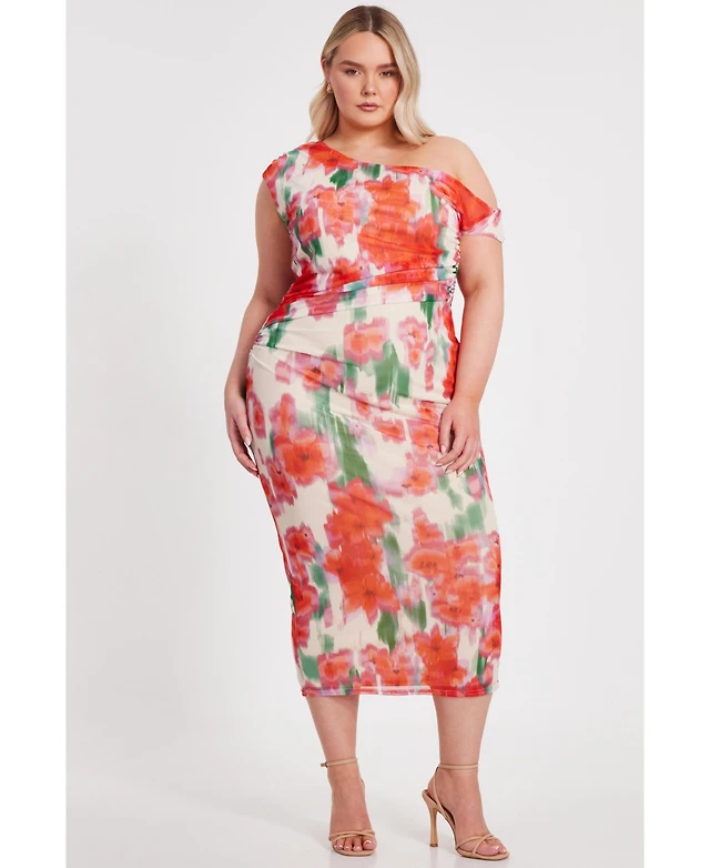 Quiz Plus One Shoulder Mesh Maxi Dress