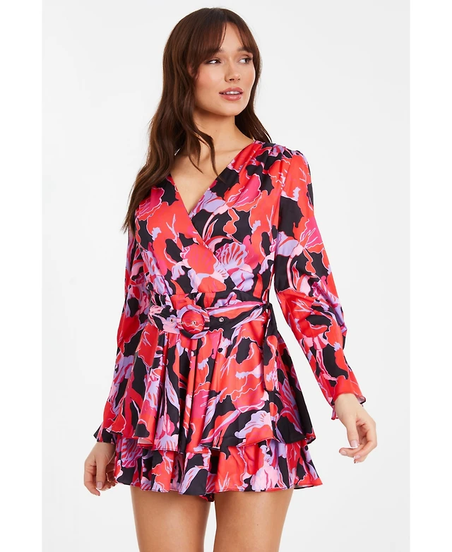 Quiz Women's Long Sleeve Wrap Romper