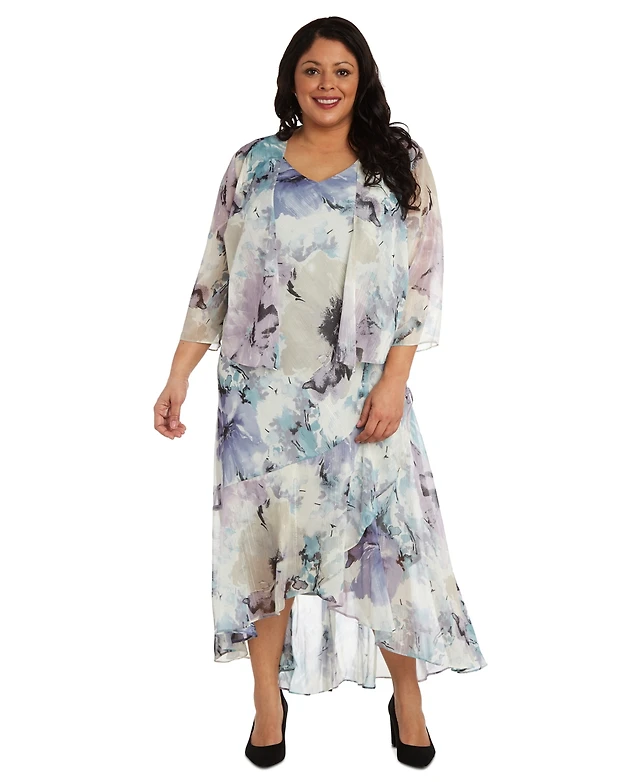 R & M Richards Plus Size Printed Sleeveless Midi Dress & Cropped Jacket