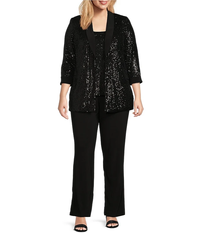 R & M Richards Plus Size Sequin Tuxedo Jacket and Tank 3-Piece Pant Suit