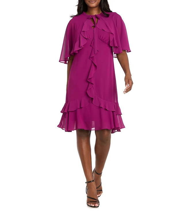 R & M Richards Women's 2-Piece Ruffle Detail Dress with Capelet