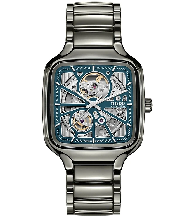 Rado Unisex Swiss Automatic True Square Skeleton Black High-Tech Ceramic Bracelet Watch 38mm