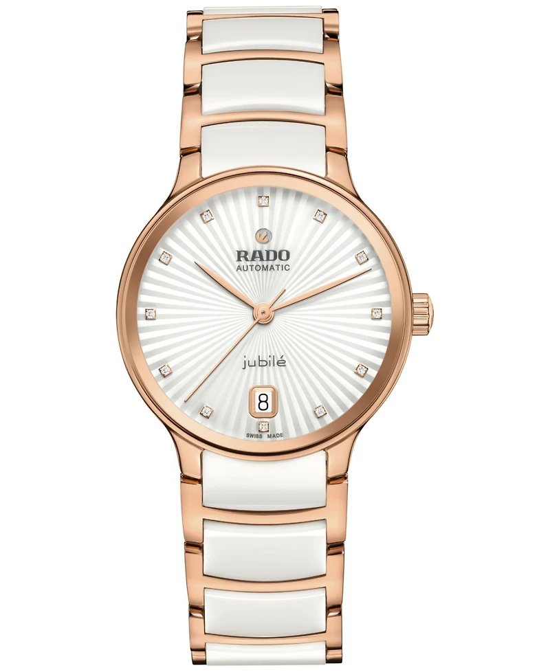 Rado Women's Swiss Automatic Centrix Diamond Accent White Ceramic & Rose Gold Pvd Stainless Steel Bracelet Watch 35mm