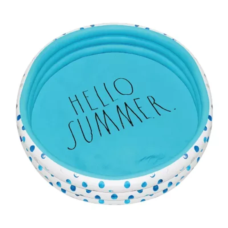 Rae Dunn Hello Summer Aqua Poka Dots Inflatable Pool Inflatable Pool