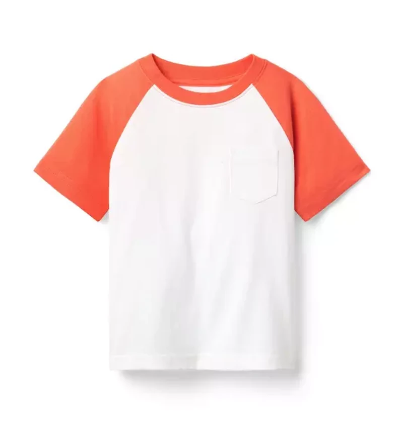 An athletic-inspired favorite. Designed with raglan sleeves and a chest pocket. 100% Cotton Jersey Short Sleeve Chest Pocket Machine Wash, Inside Out, Gentle Cycle; Imported