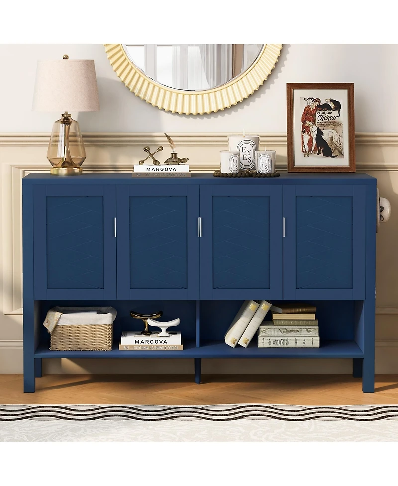Rainsken 55" Modern Wood 4 Door Buffet Sideboard with Open Shelf