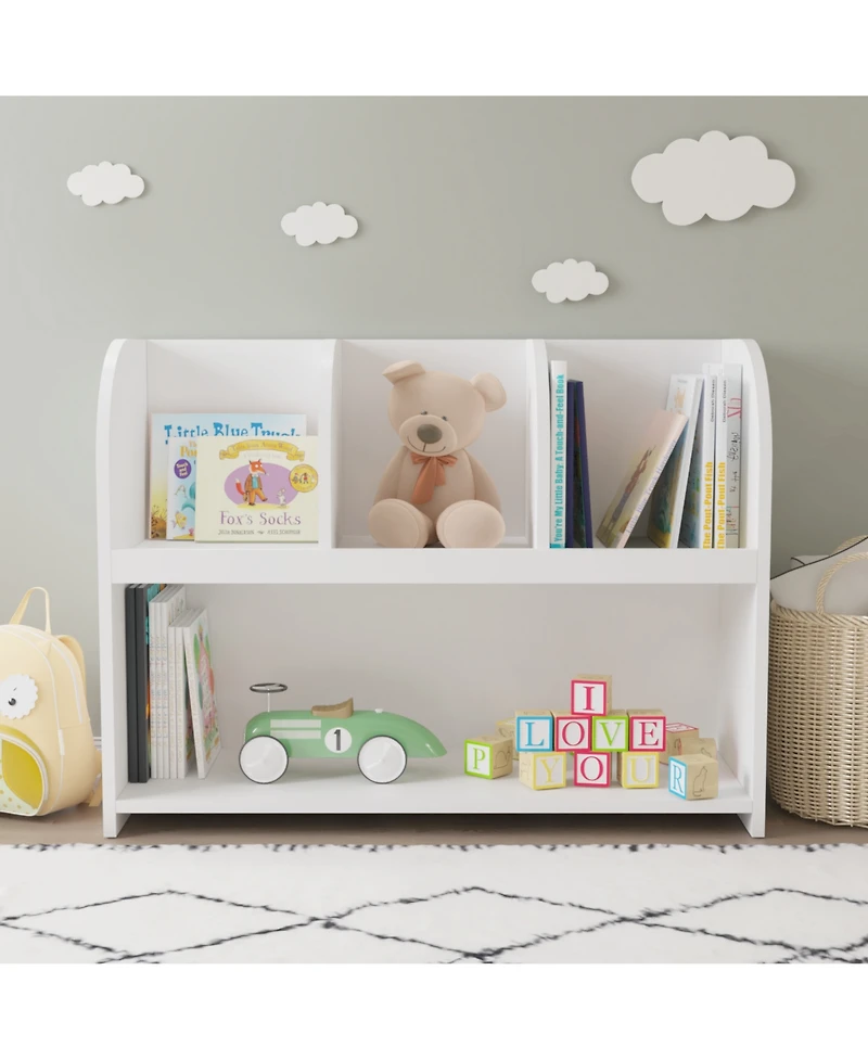This Kids Bookcase with 4 Compartments is a multi-functional storage and display solution designed for children s spaces. It offers open shelving for books, toys, art supplies and decorations, helping keep kids rooms, playrooms and nurseries clean and organized.