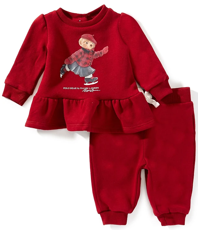 Ralph Lauren Baby Girls Long-Sleeve Polo Bear Fleece Sweatshirt & Matching Jogger Pant Set
