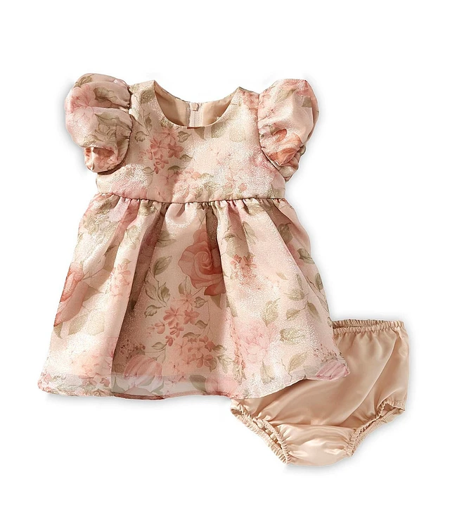 Rare Editions Baby Girls Puffed-Sleeve Floral Organza Fit-And-Flare Dress
