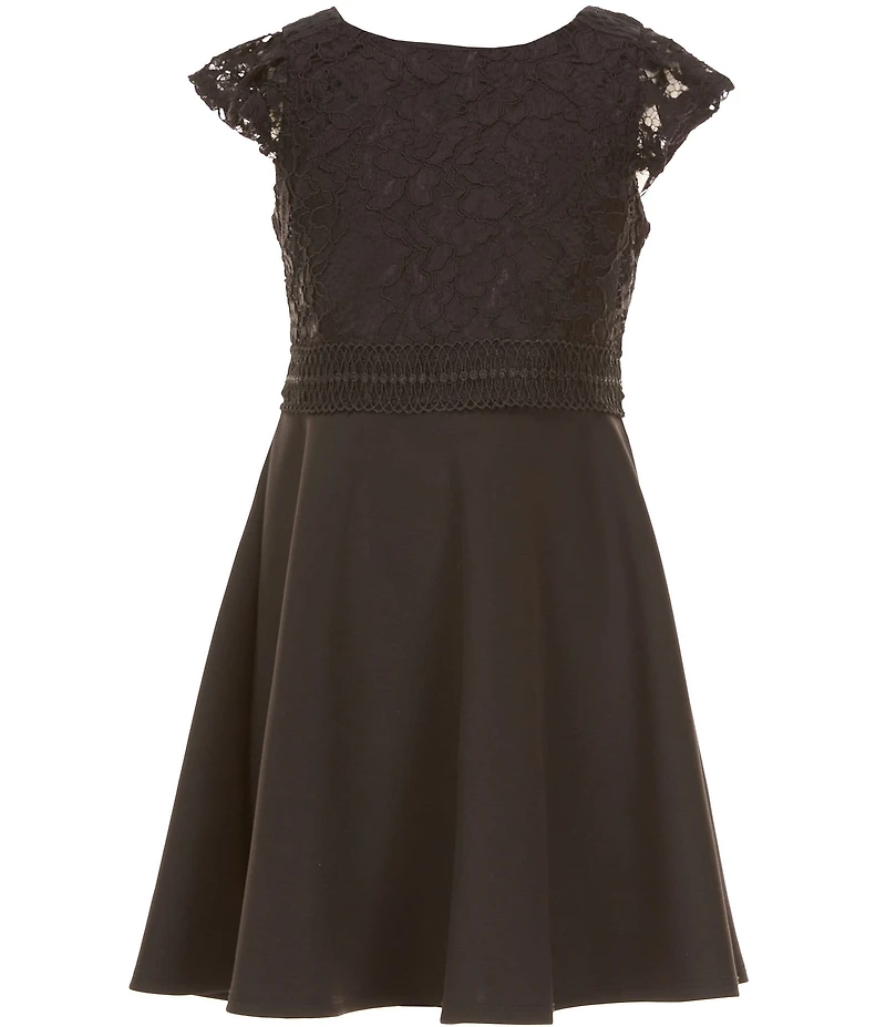 Rare Editions Big Girls Cap-Sleeve Lace-Bodice/Scuba-Skirted Fit-And-Flare Dress