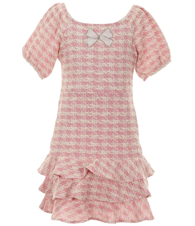 Rare Editions Big Girls Puffled-Sleeve Checked Boucle A-Line Dress