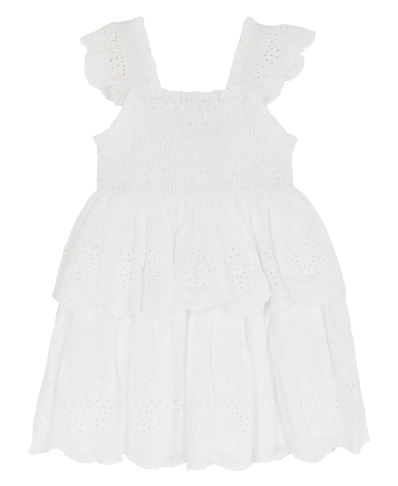 Rare Editions Girls' 2T-6X Cotton Eyelet Square Neck Flutter Dress