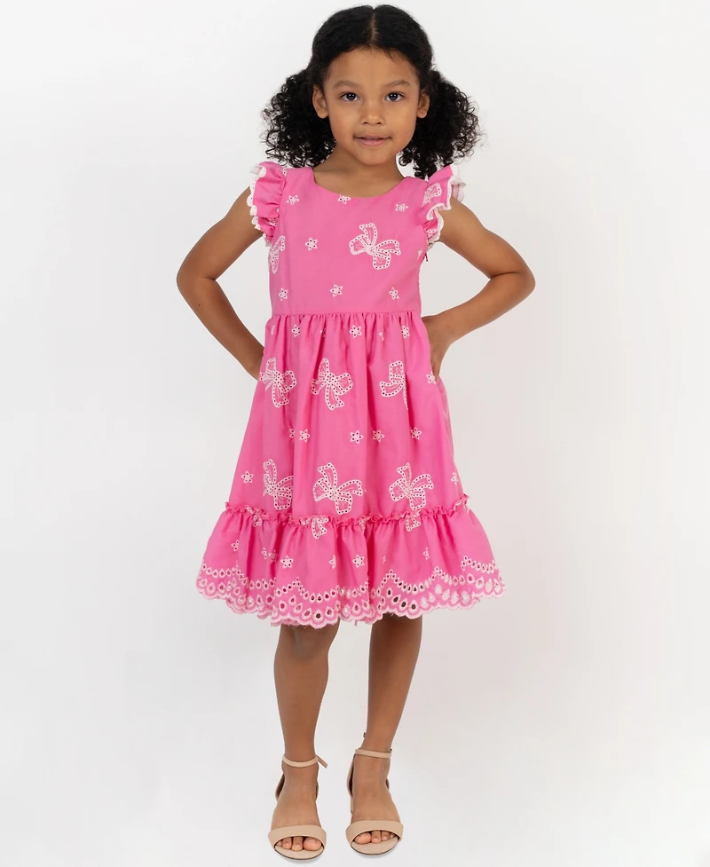 Rare Editions Girls' 2T-6X Cross Back Detail Bow Eyelet Dress