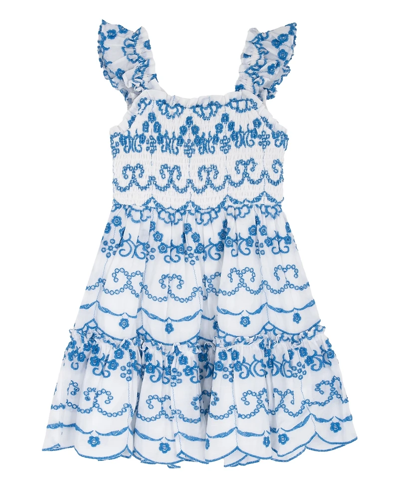 Rare Editions Girls' 4T-6X Embroidered Eyelet Smocked Dress