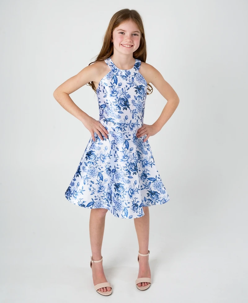 Rare Editions Girls' 7-16 Floral Mikado Sleeveless Dress