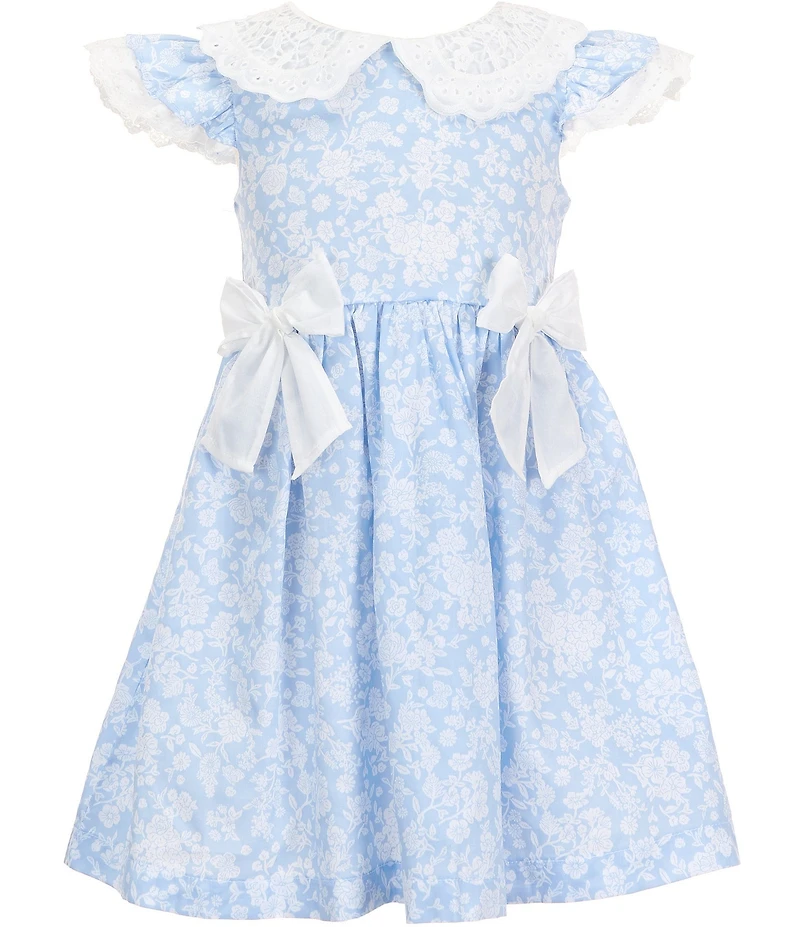 Rare Editions Little Girls Layered-Flutter-Sleeve Eyelet Peter Pan Collar Bow-Detail Floral-Printed Fit-And-Flare Dress