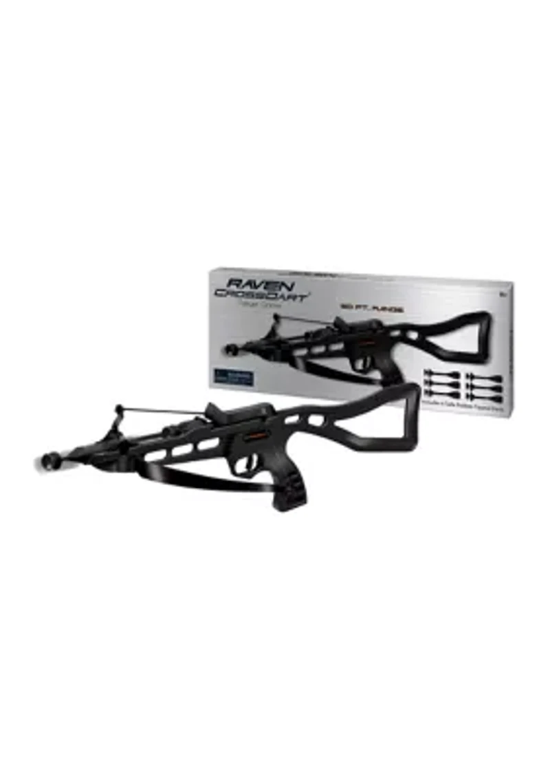 CrossDart Target Game accurately shoots soft rubber suction-cup darts as far as 50 feet! 6 darts are included in order to support all of your child's secret missions or target practice training. The package also includes a bullseye that allows shooters to compete with each other and classify their skill levels based on distance from the target. This CrossDart version comes in raven-colored black, has an extended stock, and includes all black darts. Includes Raven CrossDart, 6 Rubber Tipped Darts WARNING: CHOKING HAZARD - Small parts. Not for children under 3 years of age Recommended for 1 player, ages 8 and up Made In China Imported Product Specifications Package dimensions: 22.38 in x 8.75 in x 1.88 in Material & Care Plastic Wipe clean with dry or damp cloth