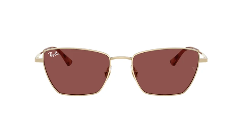 Make a statement in ray-ban rb3783 sunglasses, where vintage meets modern design. The irregular sunglasses, crafted from lightweight gold metal, showcase a subtle cat-eye silhouette for a distinctive look. Vivid violet lenses and sprayed havana temple tips add bold energy to the timeless style. These sunglasses with adjustable nosepads ensure effortless comfort and a perfect fit.