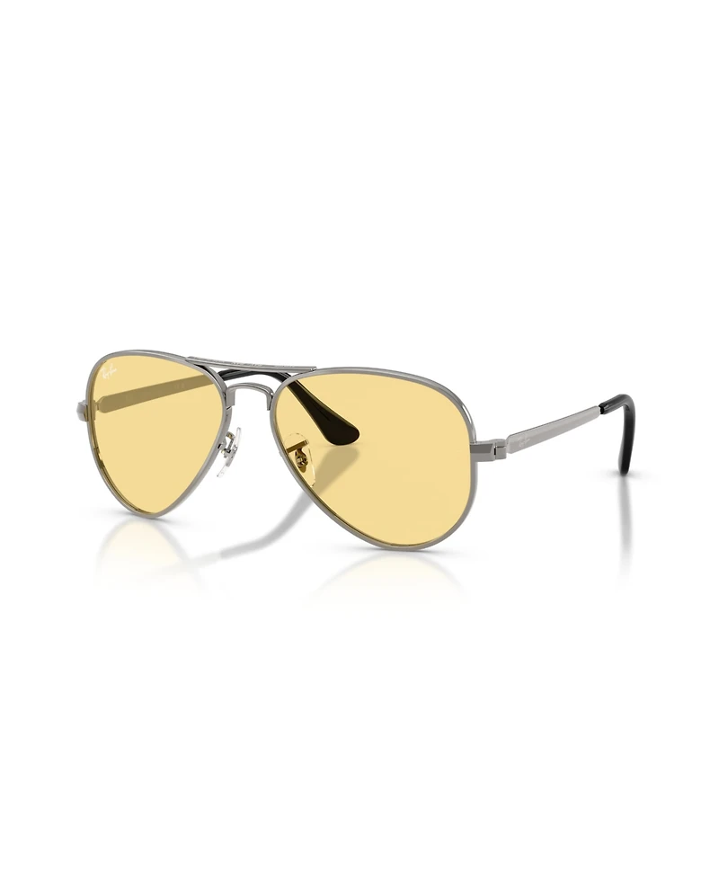 The Aviator Max takes the timeless allure of the iconic Ray-Ban Aviator to new heights. Featuring a bold evolution of the legendary silhouette, these pilot-shaped Ray-Ban sunglasses showcase a thicker grey metal frame and temples for an amplified edge. Yellow classic lenses add a fresh twist, while adjustable nosepads ensure effortless comfort. A true statement of enduring style and strength.