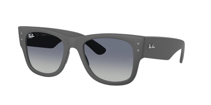 Introducing ray-ban mega wayfarer liteforce, a modern twist on the iconic design. These shades features a square shape crafted from peek material for added durability and comfort. The matte sand gray frame color adds a touch of sophistication, while the grey gradient blue lenses provide a sleek transition of color. Available with prescription lenses.