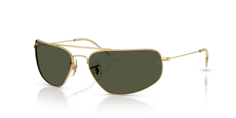 Introducing the RB3780: a bold interpretation of Ray-Ban style. These wraparound pilot-shaped Ray-Ban sunglasses feature sleek, gold sunglasses frames with clean, rectangular lines that add structure and edge. The green classic lenses provide full coverage while offering advanced UVA/UVB protection. Adjustable nosepads sunglasses ensure a comfortable, personalized fit, making these sunglasses as effortless as they are striking. Designed for fast lives and fearless moments, they redefine modern sophistication.