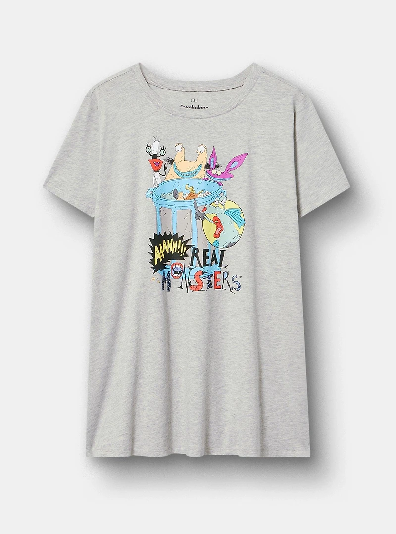 FIT Classic fit: Fitted up top, eased through the body. Measures 30’’ from shoulder (size 2). MATERIALS + CARE Cotton jersey knit fabric. 60% cotton, 40% polyester. Machine wash cold. Tumble dry low. Imported. DETAILS Crew neck. Short sleeves. Aaahh!!! Real Monsters graphic.