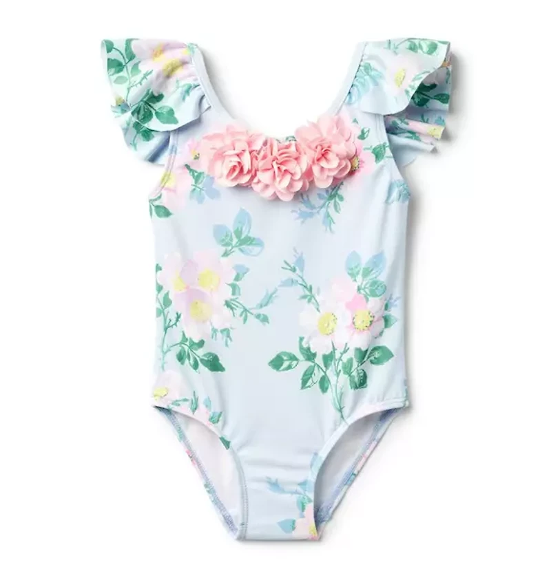 Our floral swimsuit always makes a splash. Featuring flutter sleeves and rosette details, plus UPF 50+ protection to help keep them stylishly safe. Responsibly made with recycled polyester fabric. 85% Recycled Polyester/15% Spandex; Lining: 100% Polyester Fully Lined UPF 50+ Sun Protection Chlorine Resistant Hand Wash; Imported