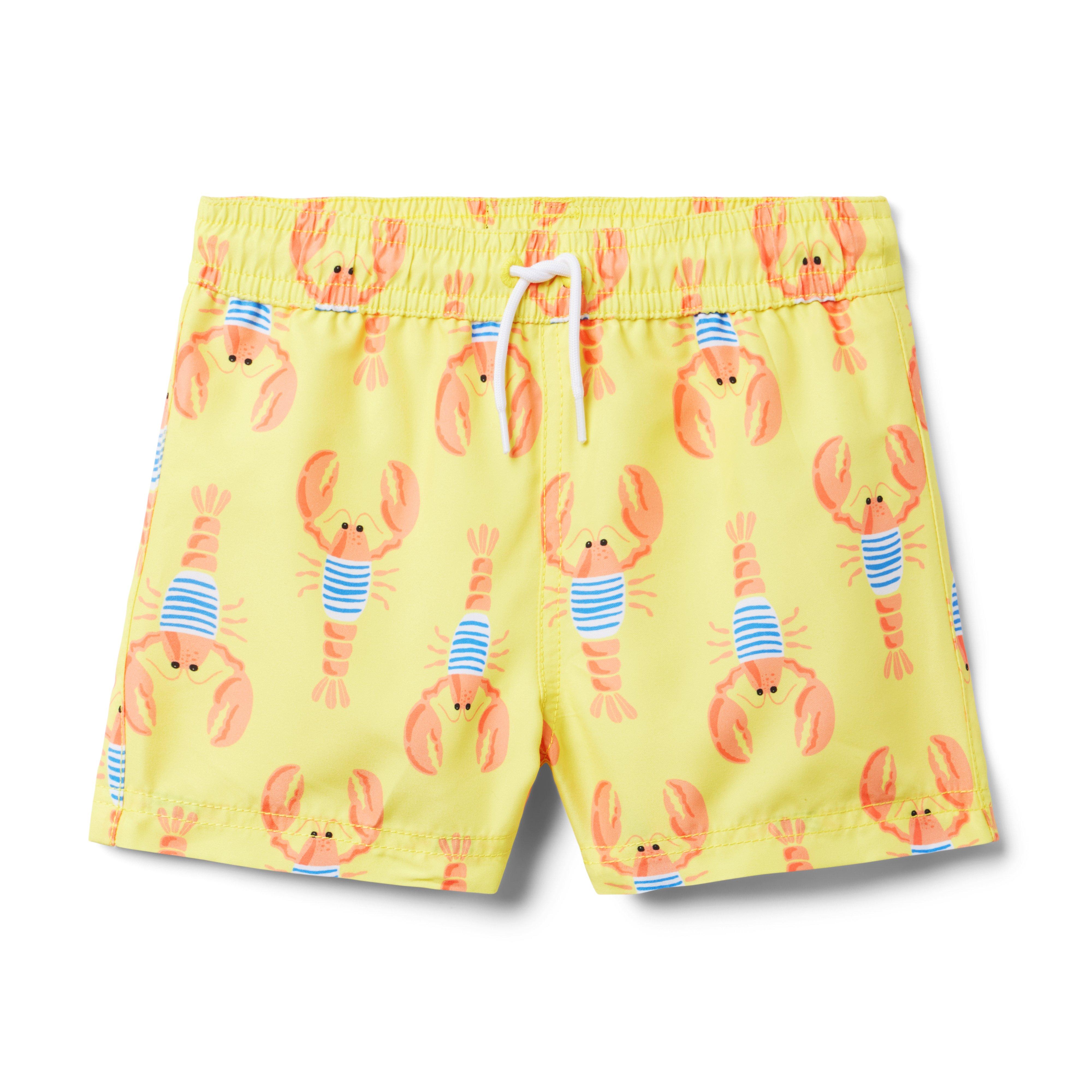Our lobster print swim trunk is the perfect catch for every pool day. With UPF 50+ sun protection, a touch-close back pocket and embroidered eyelets to let water drain out. Responsibly made with recycled fabric. 100% Recycled Polyester; Lining: 100% Polyester Fully Lined; Mesh Liner UPF 50+ Sun Protection; Chlorine Resistant Touch-Close Back Pocket; Inseam: 2 ¼" Elasticized Waist; Functional Drawstring Matching Family Styles Available Machine Washable; Imported
