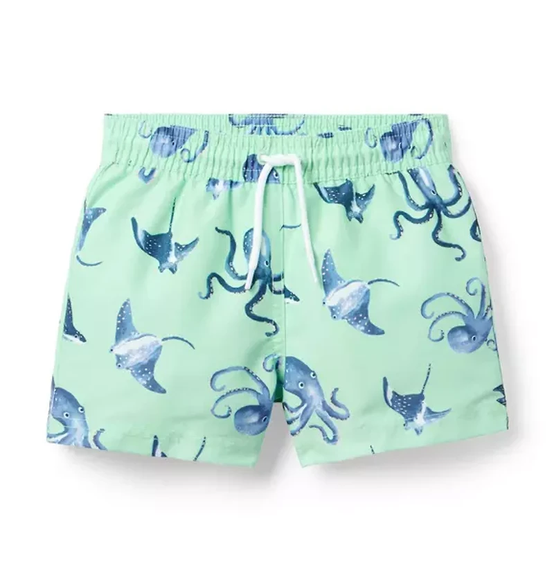 Turn the tide with our sea friends swim trunk. Designed with UPF 50+ sun protection, a touch-close back pocket and embroidered eyelets to let water drain out. Responsibly made with recycled fabric. 100% Recycled Polyester; Lining: 100% Polyester Fully Lined; Mesh Liner UPF 50+ Sun Protection; Chlorine Resistant Touch-Close Back Pocket; Inseam: 2 ¼" Elasticized Waist; Functional Drawstring Machine Washable; Imported