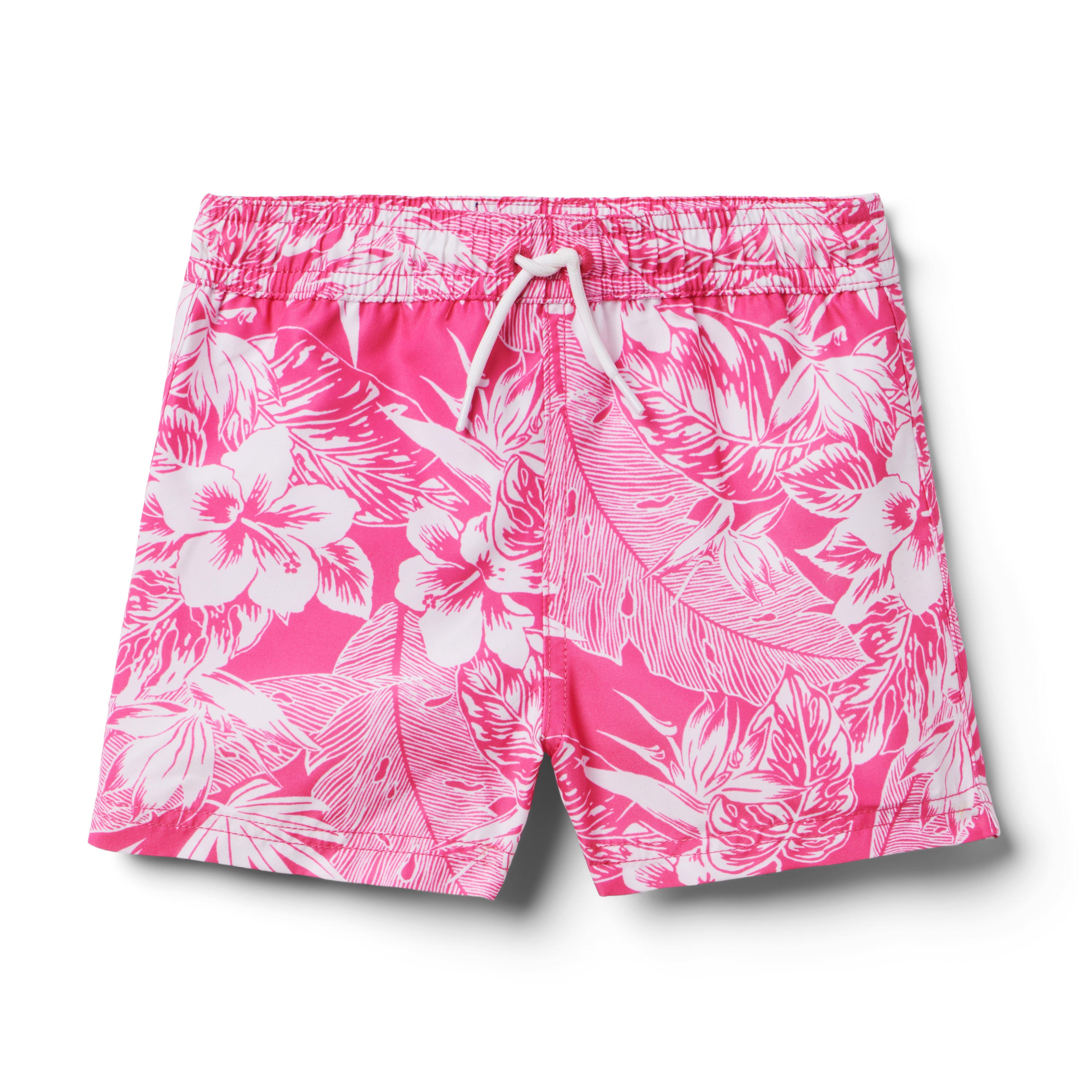 For instant vacation vibes, dive into our tropical floral swim trunks. Featuring UPF 50+ sun protection, a touch-close back pocket and embroidered eyelets to let water drain out. Responsibly made with recycled fabric. 100% Recycled Polyester; Lining: 100% Polyester Fully Lined; Mesh Liner UPF 50+ Sun Protection; Chlorine Resistant Touch-Close Back Pocket; Inseam: 2 ¼" Elasticized Waist; Functional Drawstring Matching Family Styles Available Online Exclusive Machine Washable; Imported