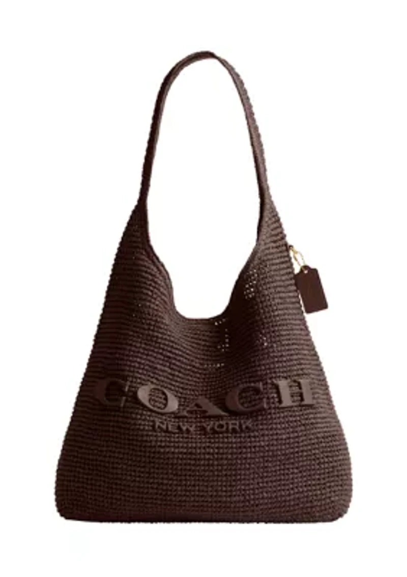 Add a touch of elegance to any look with this charming COACH shoulder bag. Straw and refined calf leather Magnetic snap closure Handle with 10.5" drop 11.5" L x 8.75" H x 2.75" W Imported Care Spot clean only