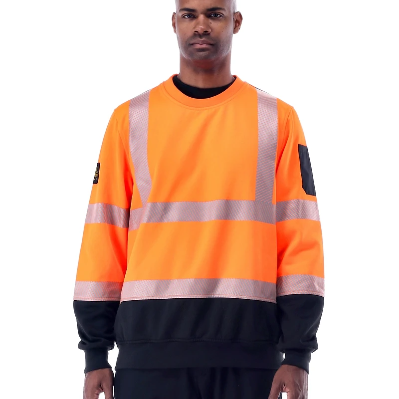 RefrigiWear Men's HiVis Crewneck Sweatshirt with Reflective Tape - High Visibility Safety Pullover