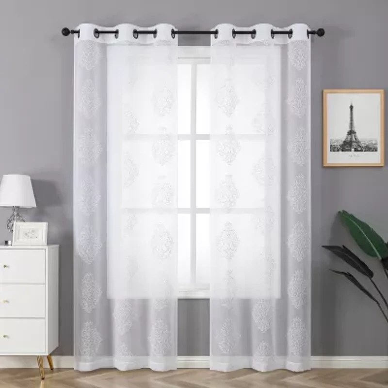 Regal Home Staffa Embroidered Grommet Top Sheer Set of 2 Curtain Panel