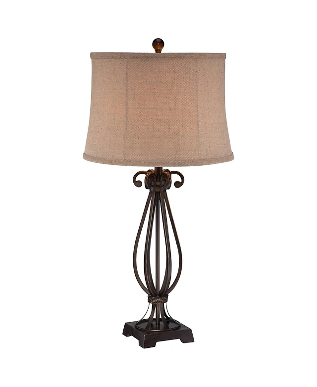 Regency Hill Taos Traditional Table Lamp 32" Tall Iron Open Scroll Base Neutral Burlap Shade for Bedroom Living Room Bedside Nightstand Office Ki