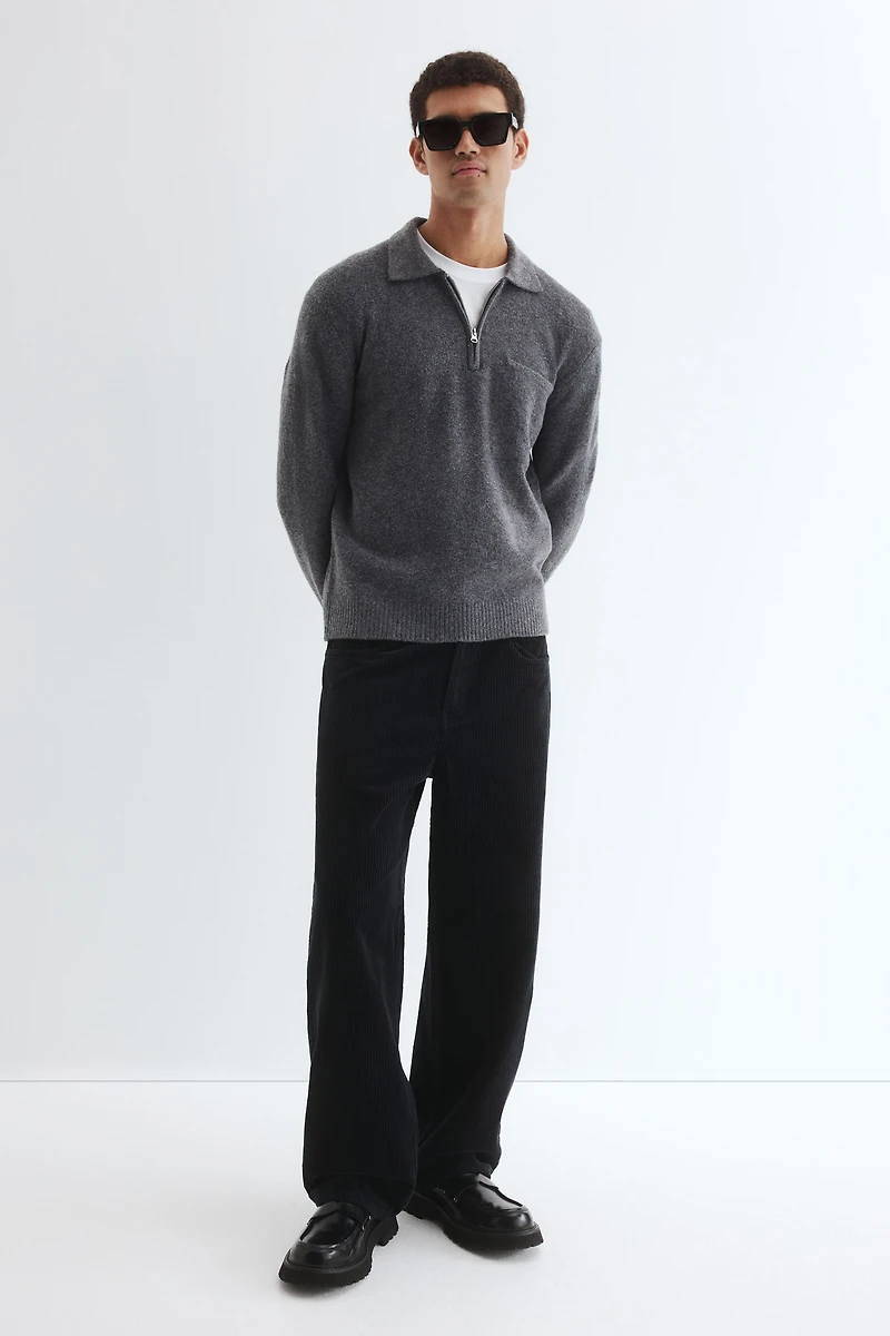Regular-fit sweater in a soft, fine knit with a comfortable, classic silhouette. Collar, half-zip, and an open chest pocket. Long sleeves and ribbing at cuffs and hem.