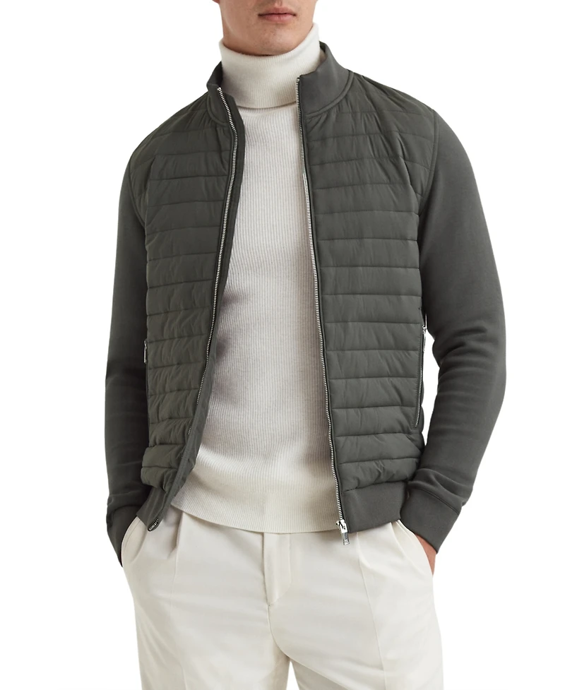 Reiss Men's Hybrid Quilt and Interlock Zip Jacket