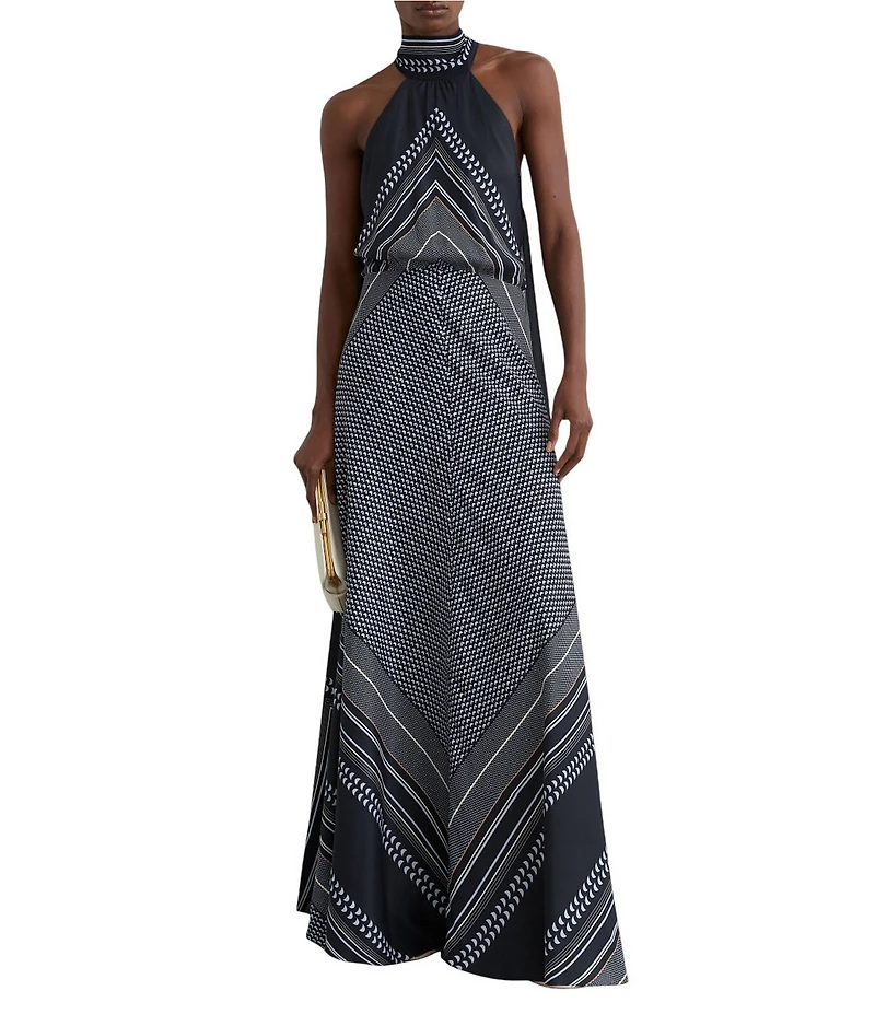 Reiss Skylar Satin Scarf Print Halter Neck Sleeveless Maxi Dress