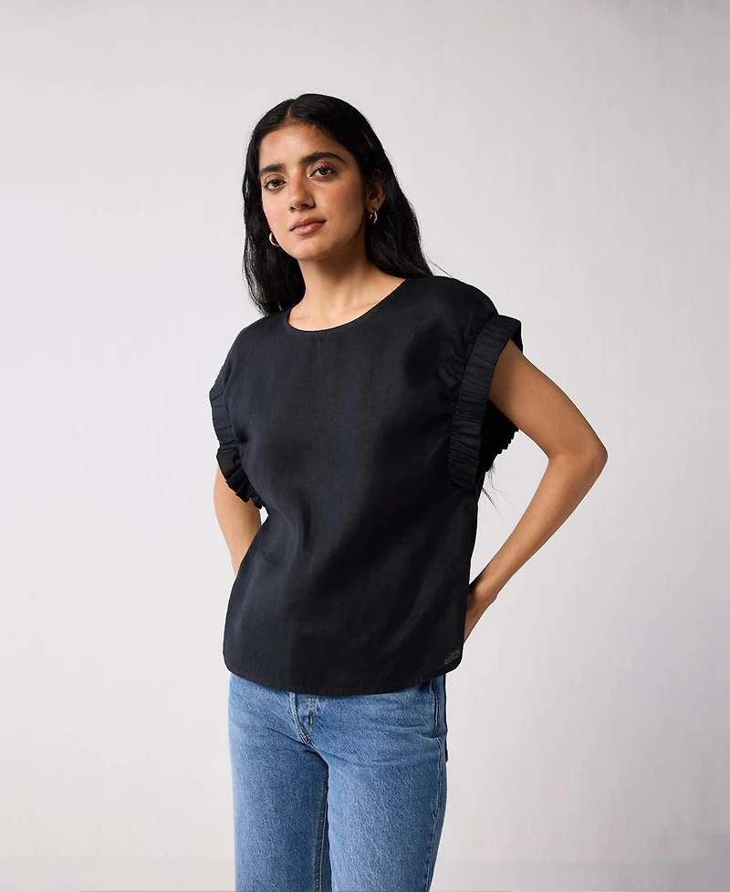 This one s an everyday wardrobe staple, a classic black top (with an edge!) you ll keep wearing on repeat. Made from 100% hemp fabric, it s breathable, lightweight, and consciously crafted with great care and intention. The relaxed fit with elasticated sleeves make this top a good choice for everyday wear, while the timeless silhouette keeps you stylish and comfy all day.