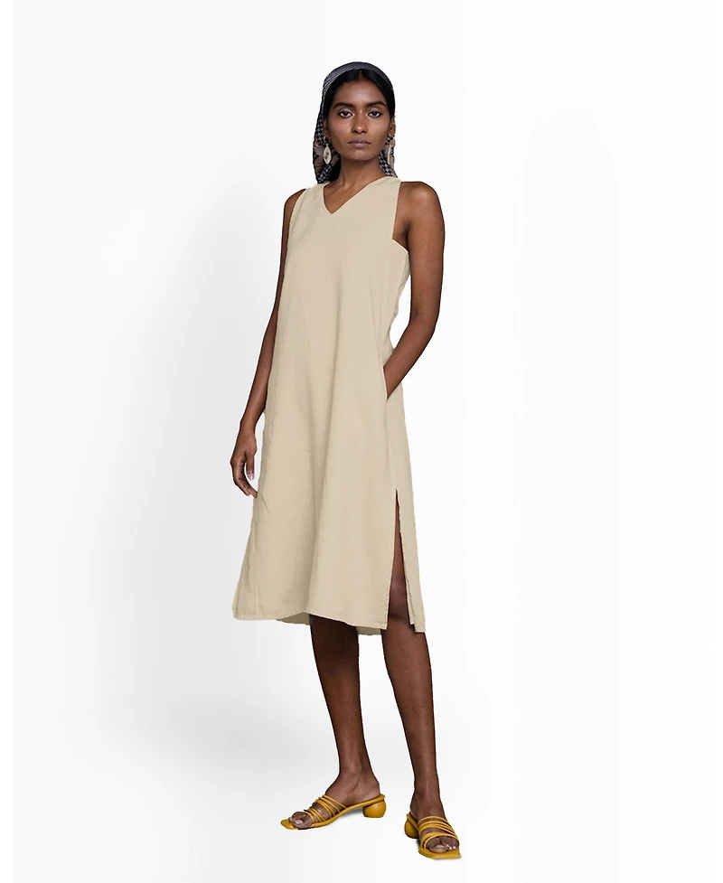 Simple and stylish, this midi-dress is all about minimalism with its modern and edgy cut and practical pockets!
