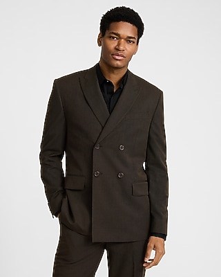 Cut in a modern relaxed fit, this suit jacket is relaxed through the shoulder and roomy through the chest. This style boasts enough stretch for all-day comfort, peak lapels, a double breasted front, and modern flap hand pockets. Plus, it features a center back vent and lining for added comfort.