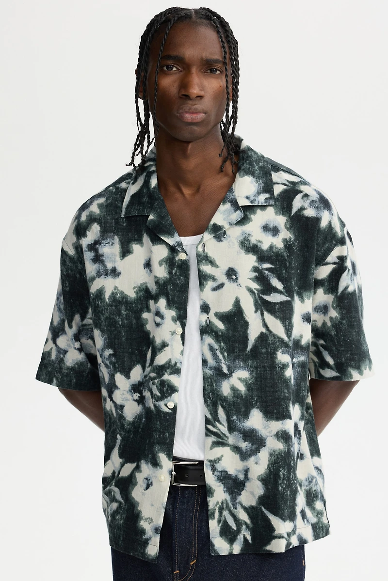 Relaxed-fit shirt in woven cotton with a casual but not oversized silhouette. Resort collar, buttons without placket, and short sleeves. Straight-cut hem.