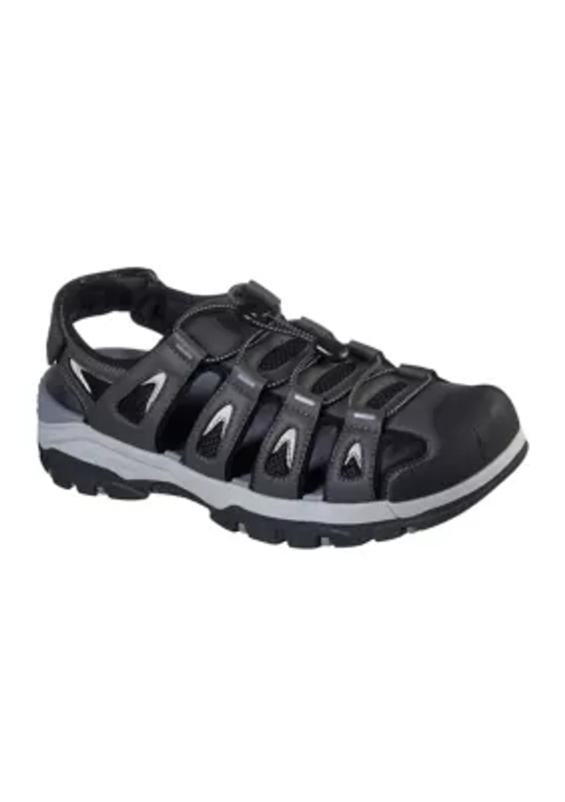 Get right into your adventures in comfort with Skechers' Relaxed Fit®: Tresmen - Outseen. Durable synthetic upper in a slip-on closed-toe river-style fisherman sandal with Luxe Foam® cushioned footbed. Design Details: Durable synthetic slip-on closed-toe river-style fisherman sandal Adjustable front and heel closures Skechers logo details Key Features: Relaxed Fit® design for a roomy, comfortable fitLuxe Foam® cushioned and contoured footbed Flexible rubber traction outsole Velcro® closure Imported Product Specifications 0.75" heel Medium width Material Rubber