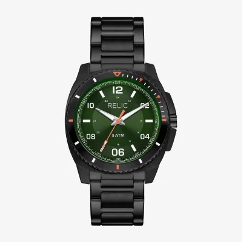 Relic By Fossil Mens Black Stainless Steel Bracelet Watch Zr12676