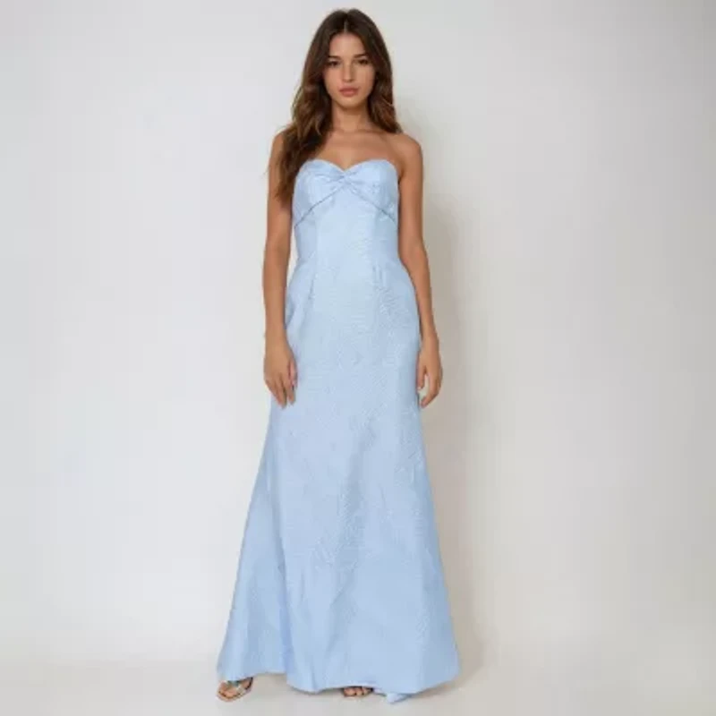 Make a delicate statement in this women’s strapless evening gown from Rene by Rene Ruiz. Featuring intricate embroidery and a graceful silhouette, it’s perfect for formal soirées. Add fine jewelry and an updo for a standout, photo-ready moment.