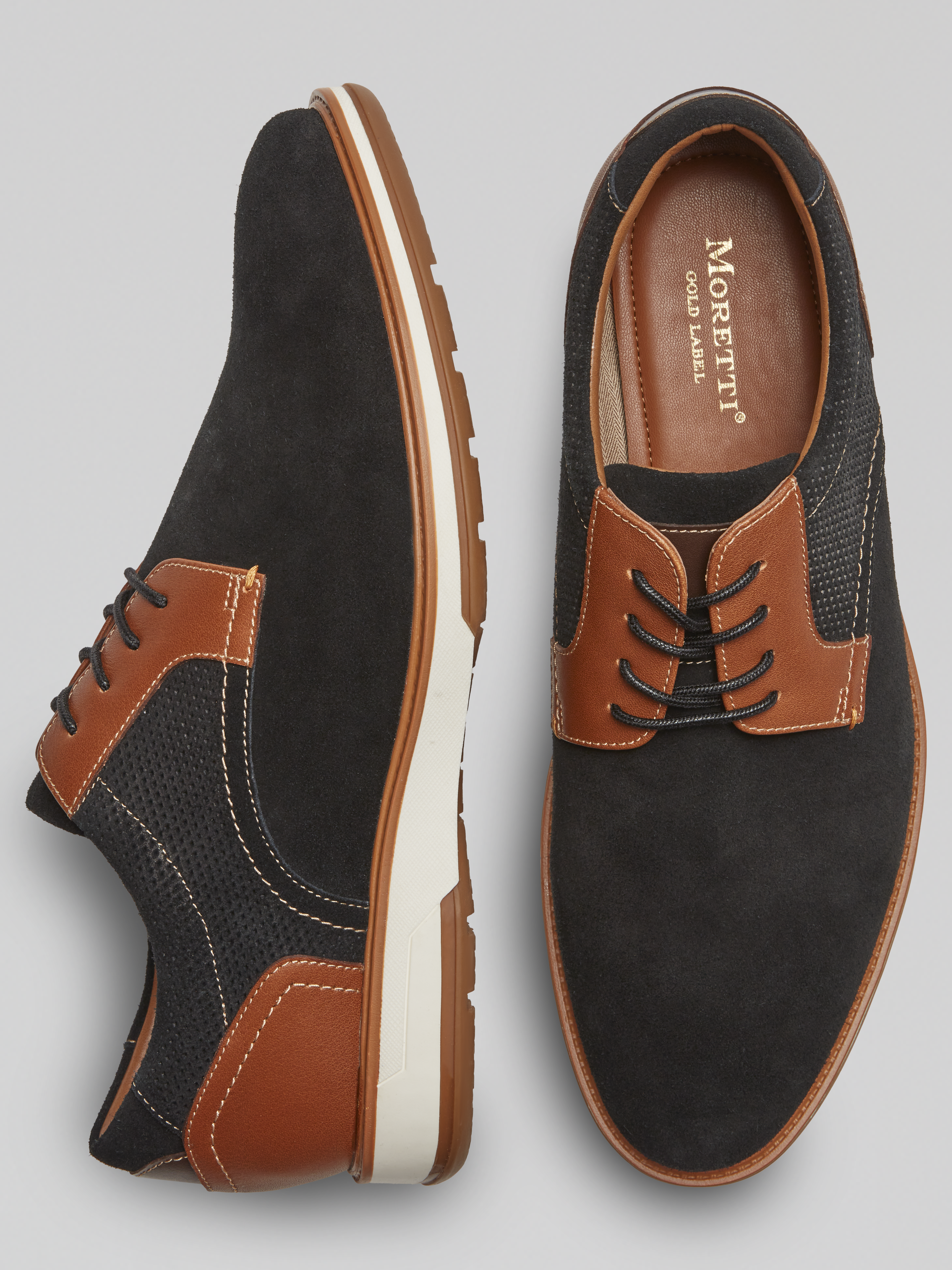 Take "business casual" to new levels of smart with these Moretti Oxfords. Featuring laser-perforated detailing, contrast stitching, and a high-vamp silhouette, these shoes are where style meets comfort. A cushioned insole and durable rubber sole ensure easy strides from desk to dinner. The almond toe design adds a dash of sleek sophistication, perfect for a polished yet relaxed vibe. Whether you're setting the tone for a meeting or strolling weekend brunch, these oxfords have got your back - and your feet. Lace up, step out, and own the day!